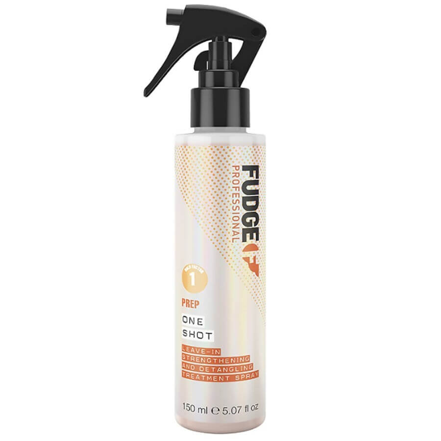 - Idéal pour adoucir et lisser les cheveux emmêlés, ternes et secs, le spray coiffant One Shot de Fudge Professionals agit pour retenir l'humidité, prévenir la casse et renforcer les cheveux de la racine aux pointes.