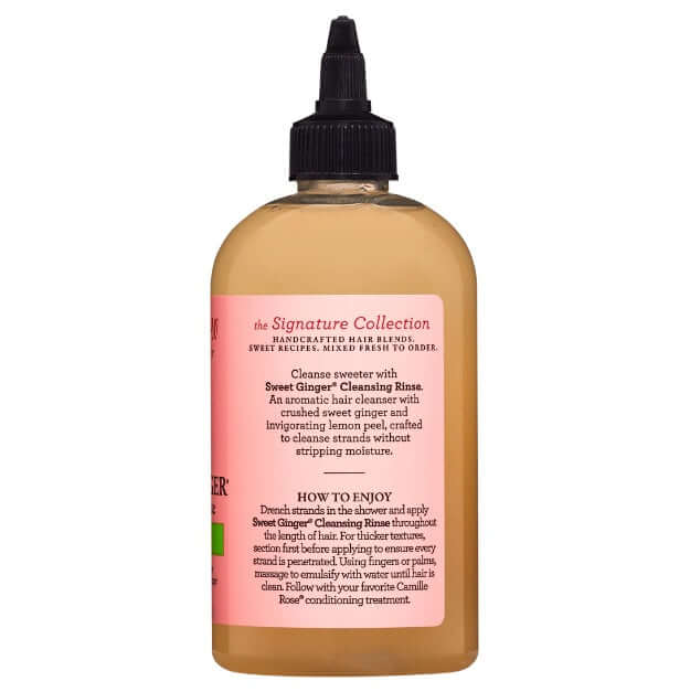 Gebruiksaanwijzing:Maak je haar nat onder de douche en breng Sweet Ginger Cleansing Rinse aan over de hele lengte van je haar. Voor dikkere texturen, verdeel het product eerst in secties voordat je het aanbrengt om ervoor te zorgen dat elke haar goed doordringt. Masseer het met je vingers of handpalmen in met water tot het haar schoon is. Gebruik daarna je favoriete verzorgende behandeling van Camille Rose Naturals.