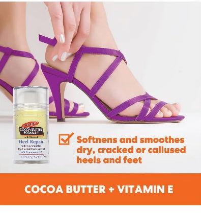 Palmers Cocoa Butter Formula Heel Repair is speciaal ontwikkeld om droge, gebarsten of eeltplekken op de hielen en voeten te verzachten en glad te maken. De heel Repair van Palmer's Cocoa Butter Formula Heel Repair bevat pure cacaoboter, vitamine E, sheaboter en pepermuntolie in een handige stick die knoeit en niet knoeit.